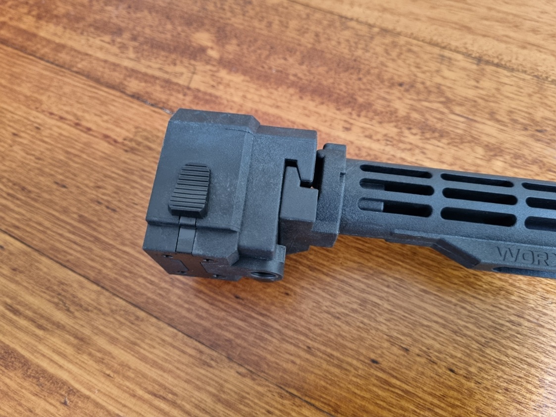 Worker CTR/STR Buffer Tube (Folding). Fits blasters with rear stock attachment point. This folding buffer tube is compatible with CTR and CAA Shoulder Stock's. See related product at bottom of page.