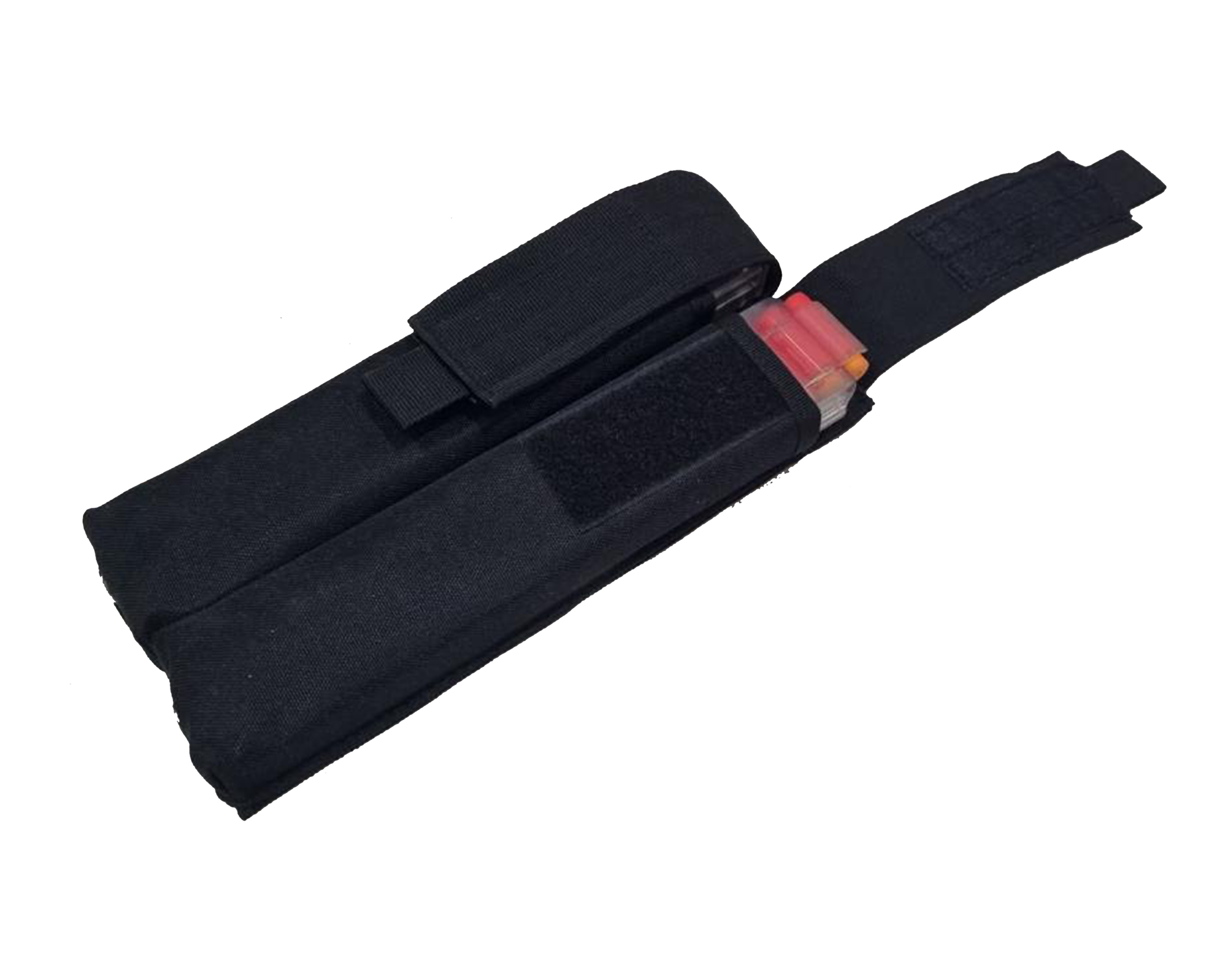 This double / single row magazine pouch compatible with 15 dart straight talon magazines. Please see other triple magazine pouch for mini talon (nightingale) magazine.